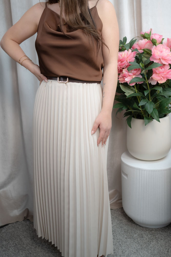 Wunderschöner eleganter und langer Plisseerock aus einem festen Twill. Inklusive Gürtel.