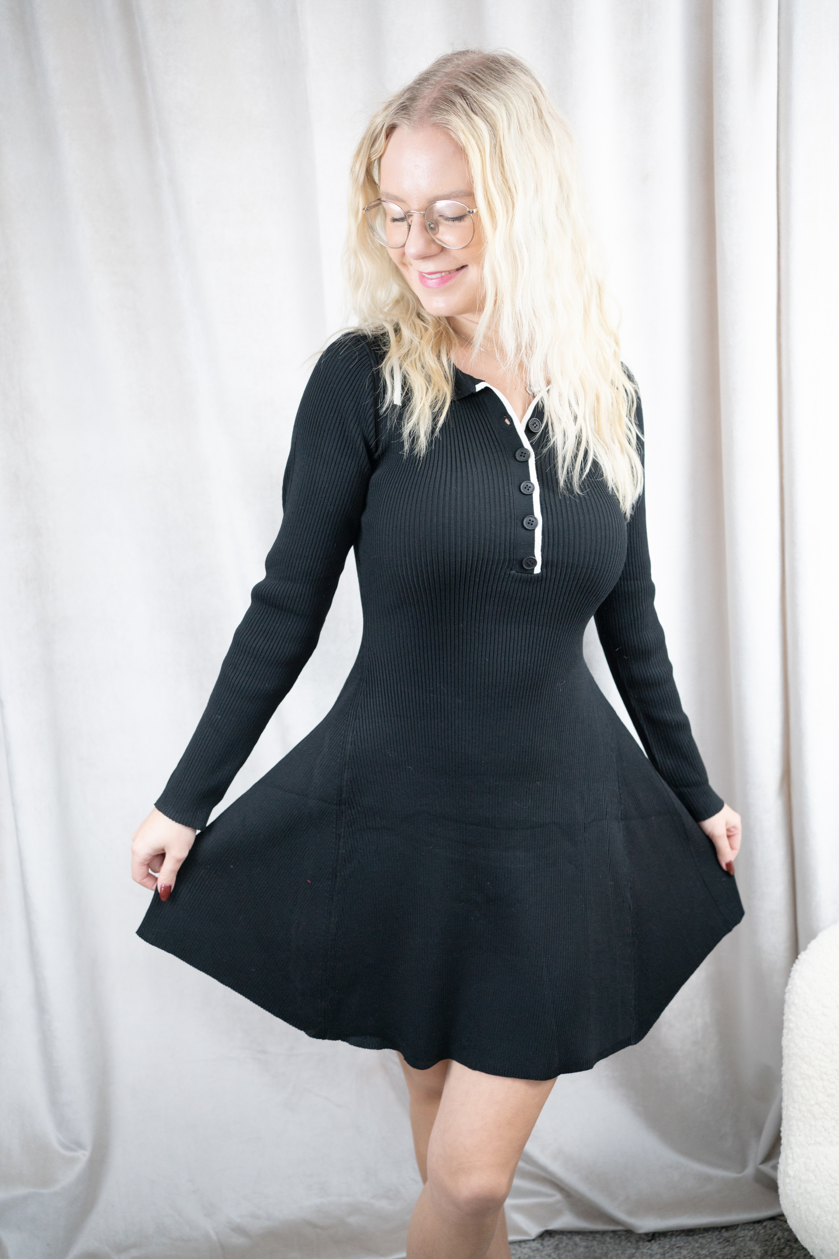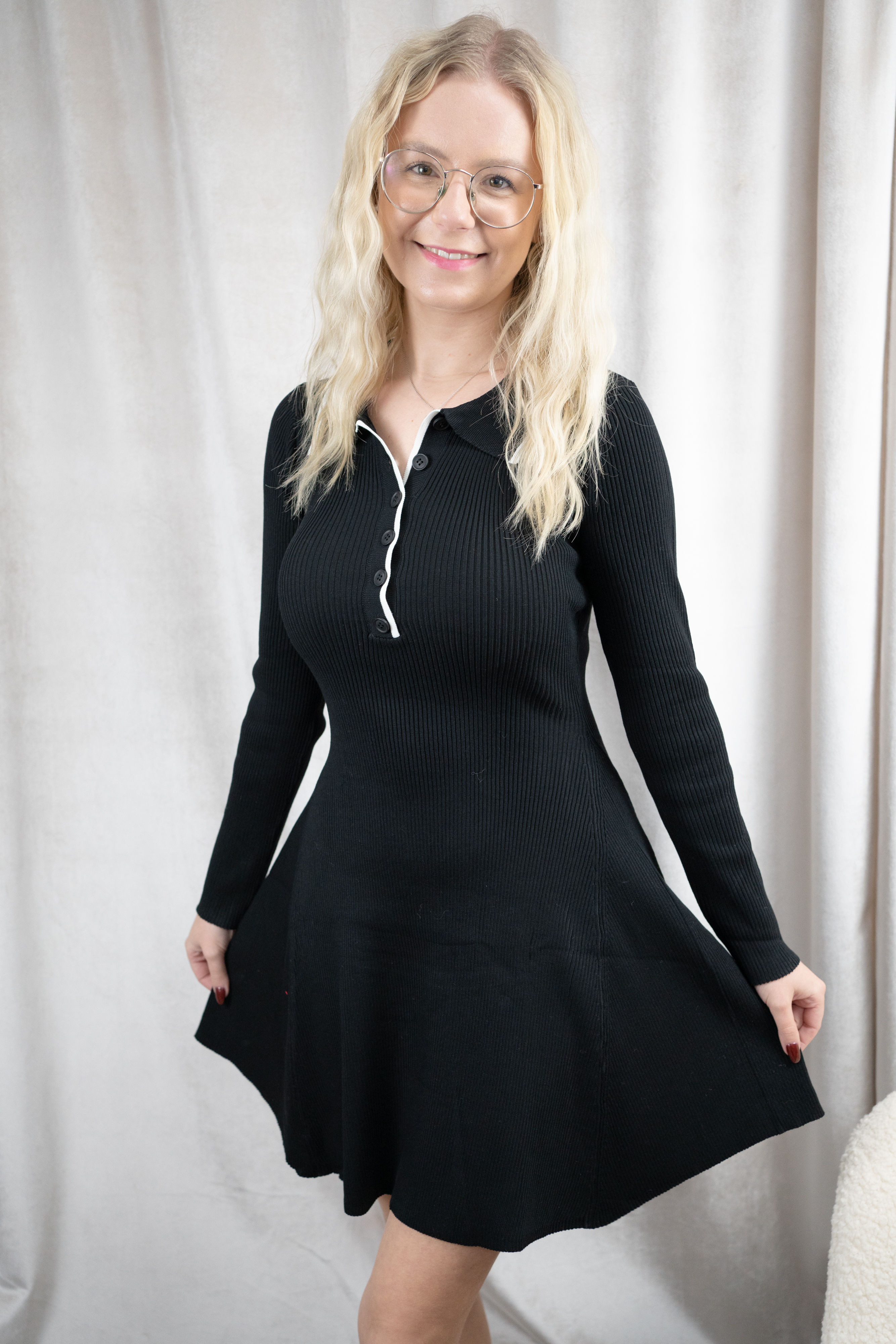 Super schönes Polokleid mit Knopfleiste aus Rippstrick mit Rock in A-Linie.