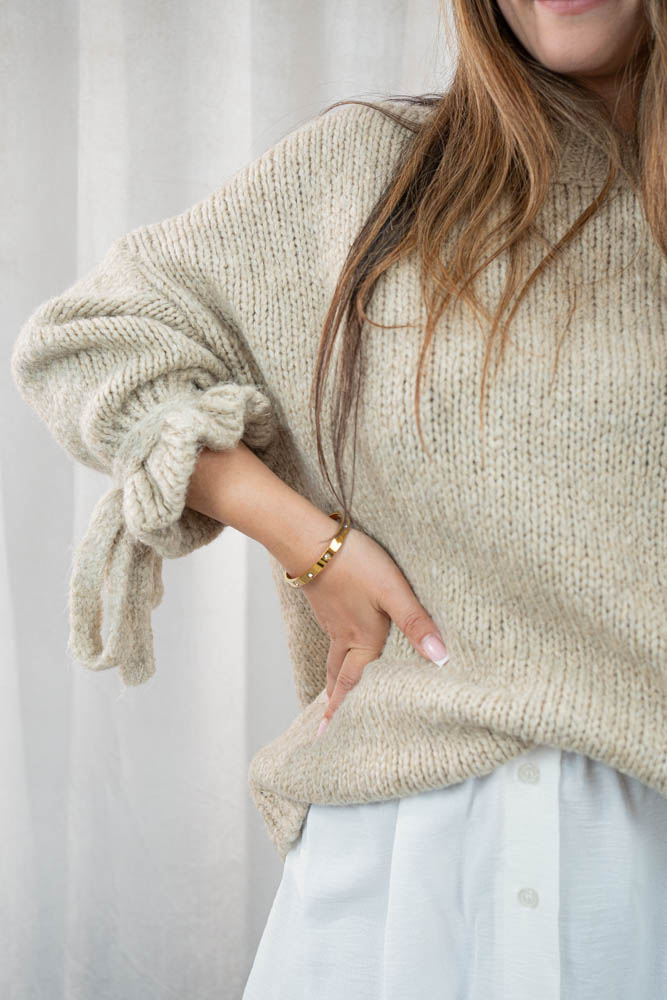 Schöner weicher Oversize Strick Pullover mit Rüschenärmeln und Bindedetails - hergestellt in Italien.