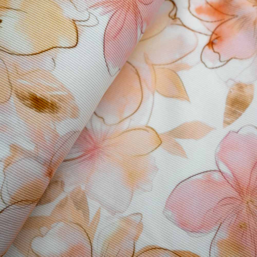 Ripp Baumwolljersey Blumen ecru