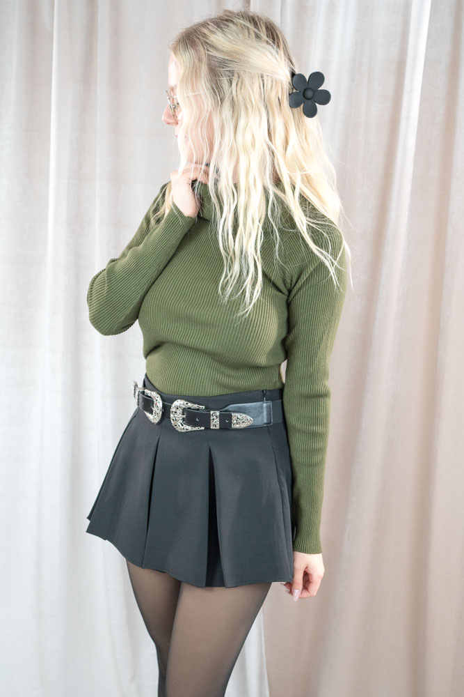 Schöner Rippstrick Pullover schulterfrei oder als Rollkragen tragbar.