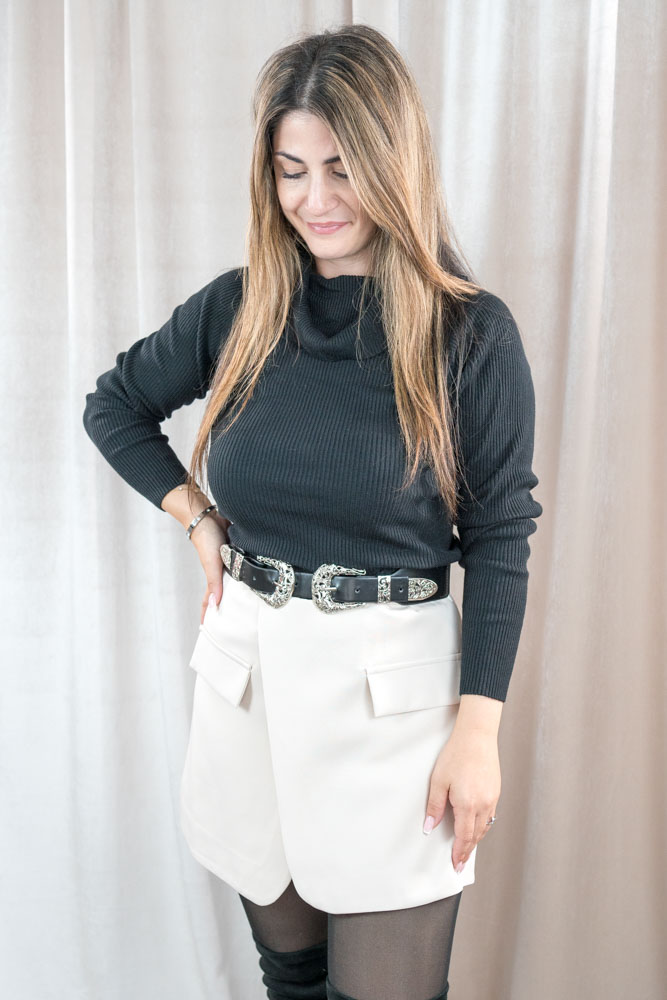 Schöner Rippstrick Pullover schulterfrei oder als Rollkragen tragbar.
