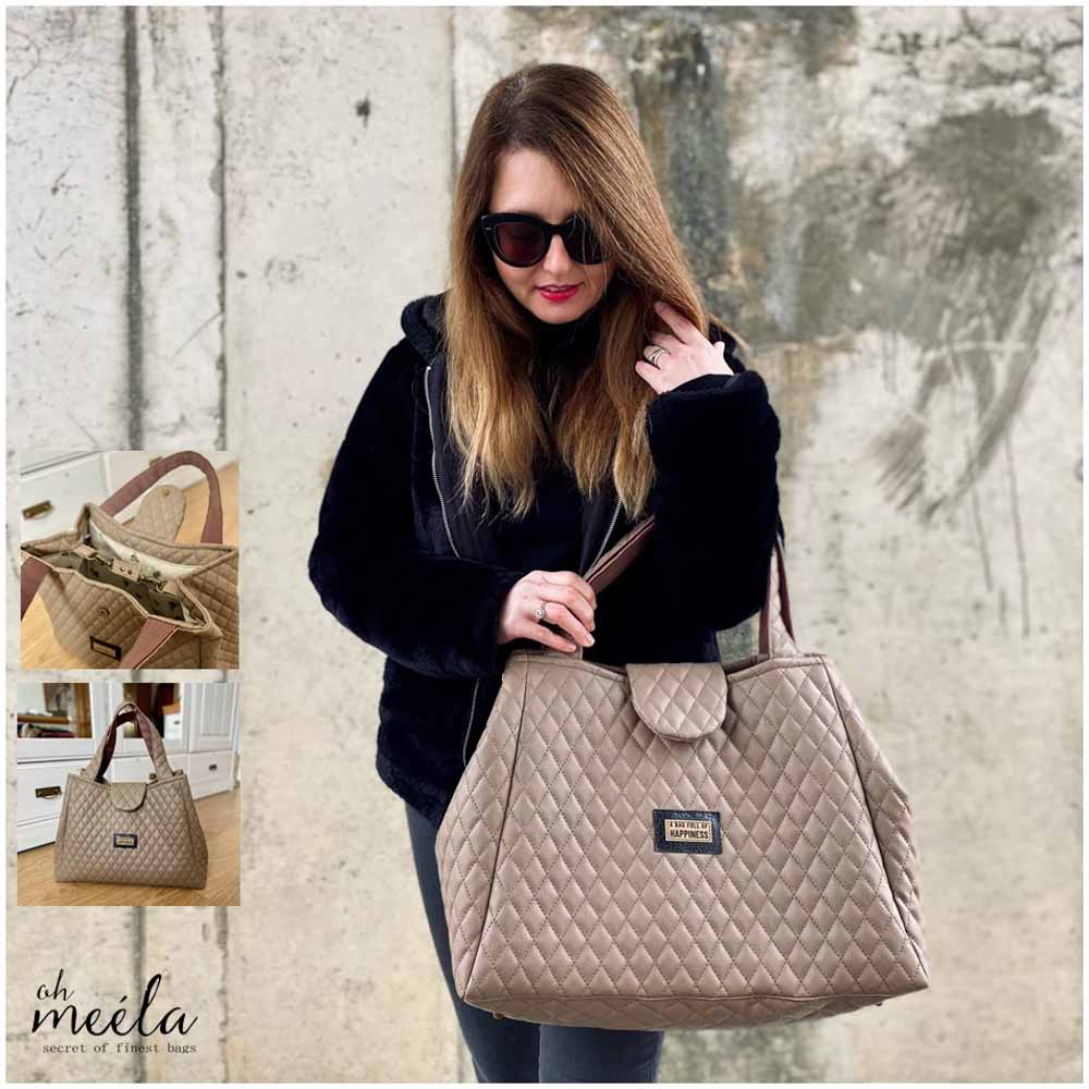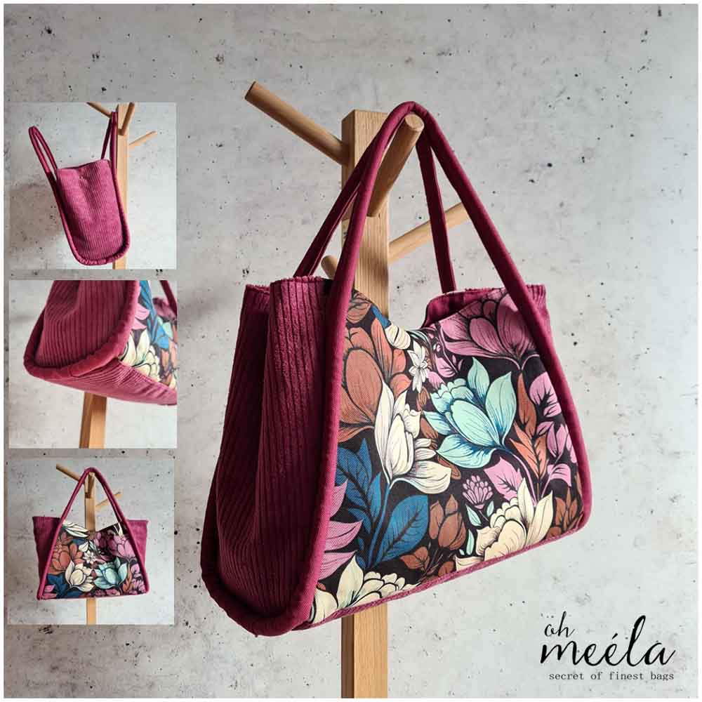 ohCarri Big ist ein großer XXL-Shopper im typischen Markttaschen-Style. Besonderer Hingucker ist der verstärkte Träger, der die Tasche komplett umschließt und somit ihre wundervolle Form unterstützt. Aber auch andere Träger-Varianten für die Hand/Arm sowie Schulter-Tragegurt sind in diesem eBook enthalten. Ob nun für den Besuch auf dem Markt für den Blumen- oder Lebensmitteleinkauf oder als Tasche für die Shoppingtour, den Besuch bei der Freundin oder aber auch für den See- oder Schwimmbadbesuch ist ohCarri ein zauberhafter Begleiter bzw. Hingucker. Durch den extra breiten Boden und die formbringende Möglichkeit die Seiten nach innen oder außen zu legen, bietet diese oh meéla-Bag unglaublich viel Volumen und Platz für deine Einsatzmöglichkeiten. Zusätzlich kannst du mit wenigen Faltungen des Schnittmusters deine ohCarri auch um 5 cm schmaler gestalten.