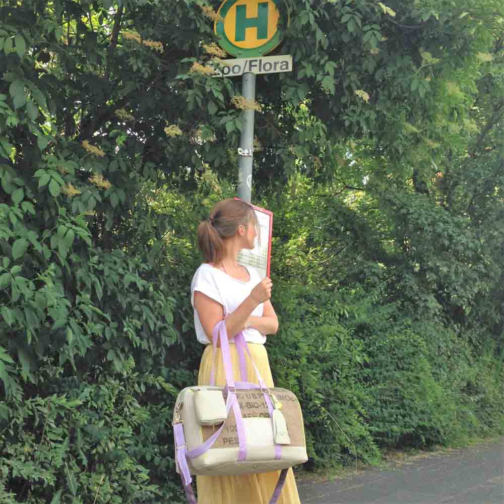 Die Außentasche deiner ohEddi kannst du optional mit verschiedenen Teilungen arbeiten und dir dort auch eine kleine Einstecktasche für z.B. das Parkticket einarbeiten. Alle benötigten Aufhängungen und Träger werden fest vernäht. Das Bodenteil wird optional mit Bodennägeln versehen.