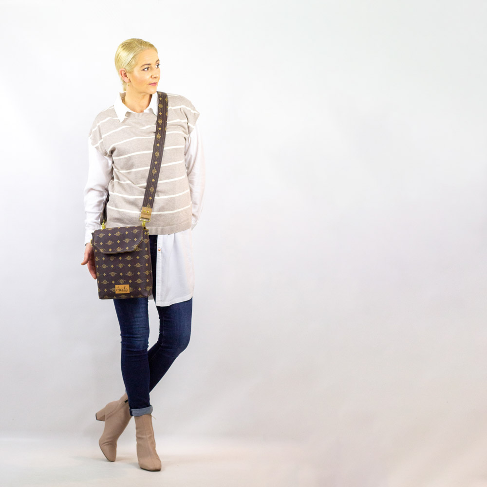 ohHarri Maxi ist eine kleine Umhänge- / Crossbody-Tasche für die wichtigsten Dinge, die Frau täglich einfach immer bei sich haben muss. Sie ist der große Bruder zur ohHarri & ohHarri Big und ergänzt die Serie perfekt.Stylisch mit einem fertigen Tragegurt oder eleganter mit selbstgenähtem Trageriemen. Bei ohHarri ist wirklich alles möglich. Sie ist eine fantastische Anfängertasche, relativ schnell genäht und perfekt für deine größeren Stoffreste oder in Kombination auch super geeignet für einen wundervollen Material- oder Muster-Mix.