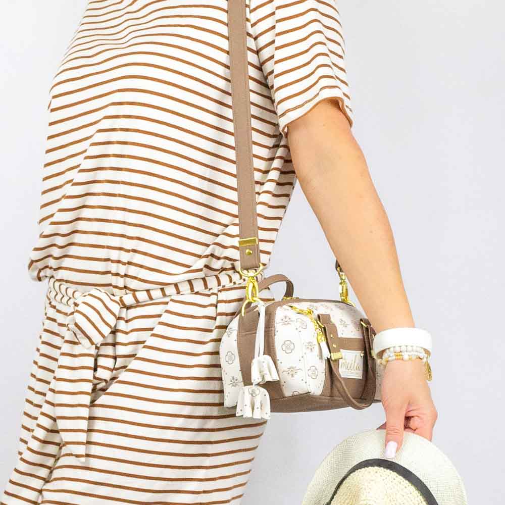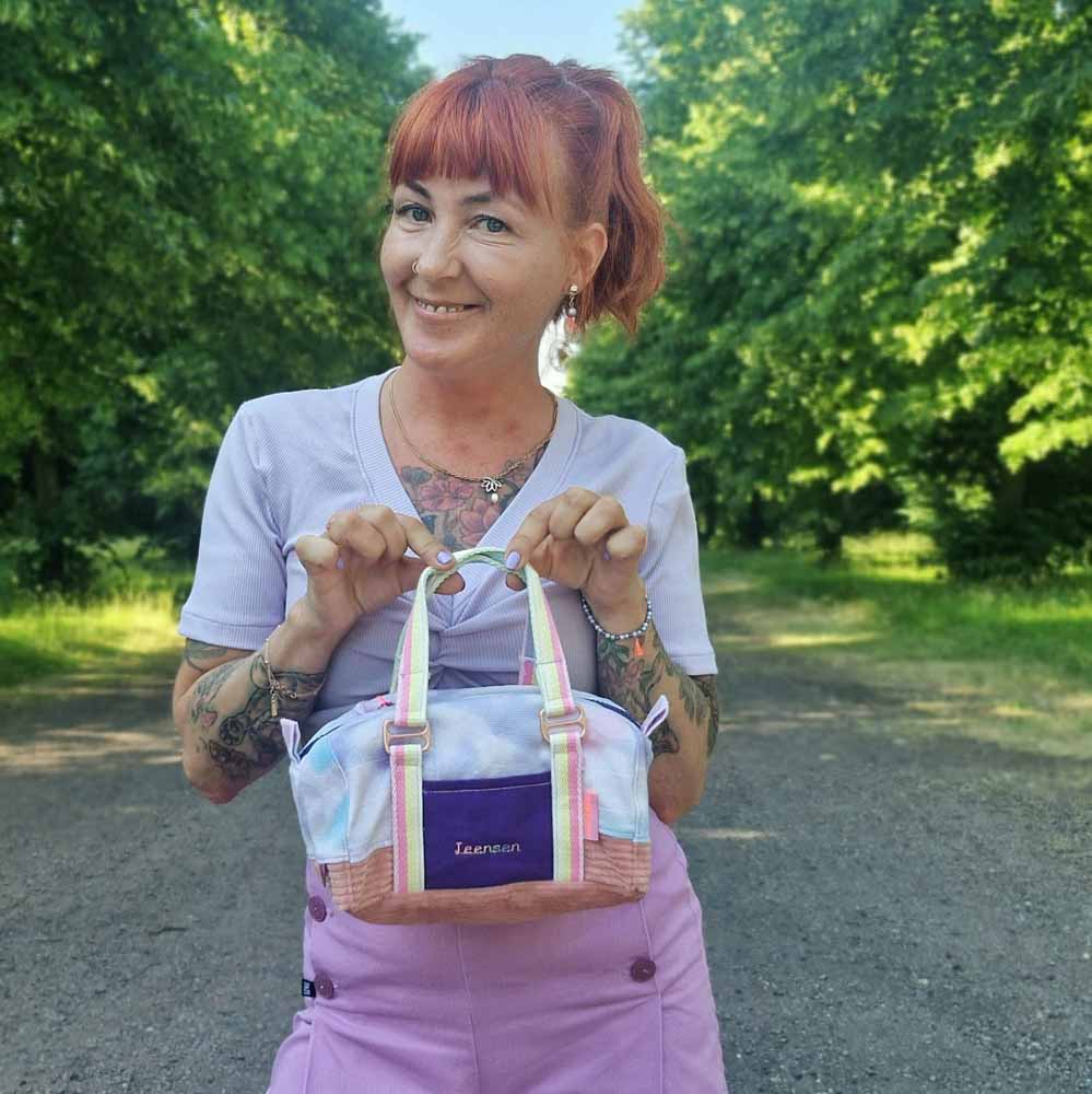 Die Außentasche kannst du optional mit einer Teilung arbeiten und dir dort auch eine kleine Einstecktasche für z.B. Desinfektionstücher oder ein paar Tampons einarbeiten. Alle benötigten Aufhängungen und Träger werden fest vernäht.