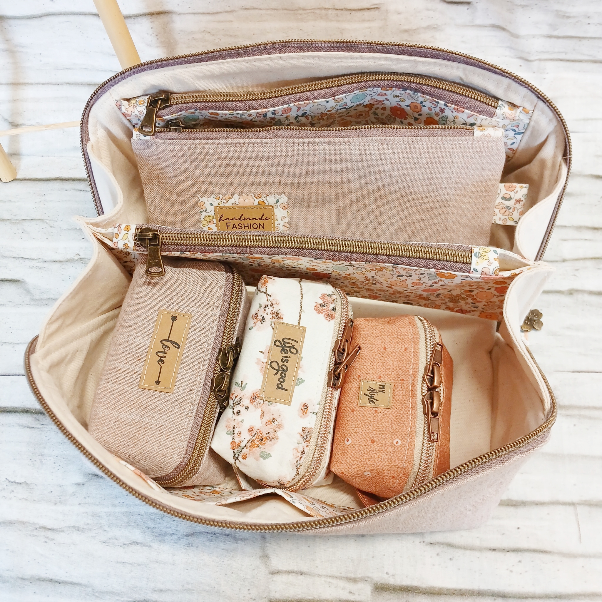 Dieses Täschchen wird komplett mit einem Reißverschluss geschlossen. Zum praktischen Öffnen und Schließen von ohKristi sweet können Aufhängungen gesetzt werden. Der Innenraum ist komplett offen gestaltet, damit, je nach Nutzung, Nähklammern, Knöpfe, Tampons, Lippenstifte, USB-Sticks und vieles mehr ausreichend Platz finden.