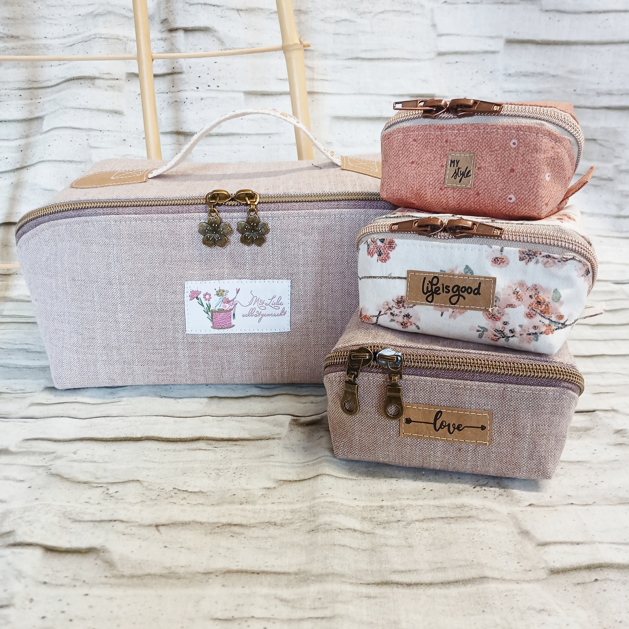 Innenstoff / Innenteile plus alle Zubehörteile aus einem Stoff zzgl. optional Verstärkung: Mini 30x40 / Midi 30x45/ Big 30x55 cm