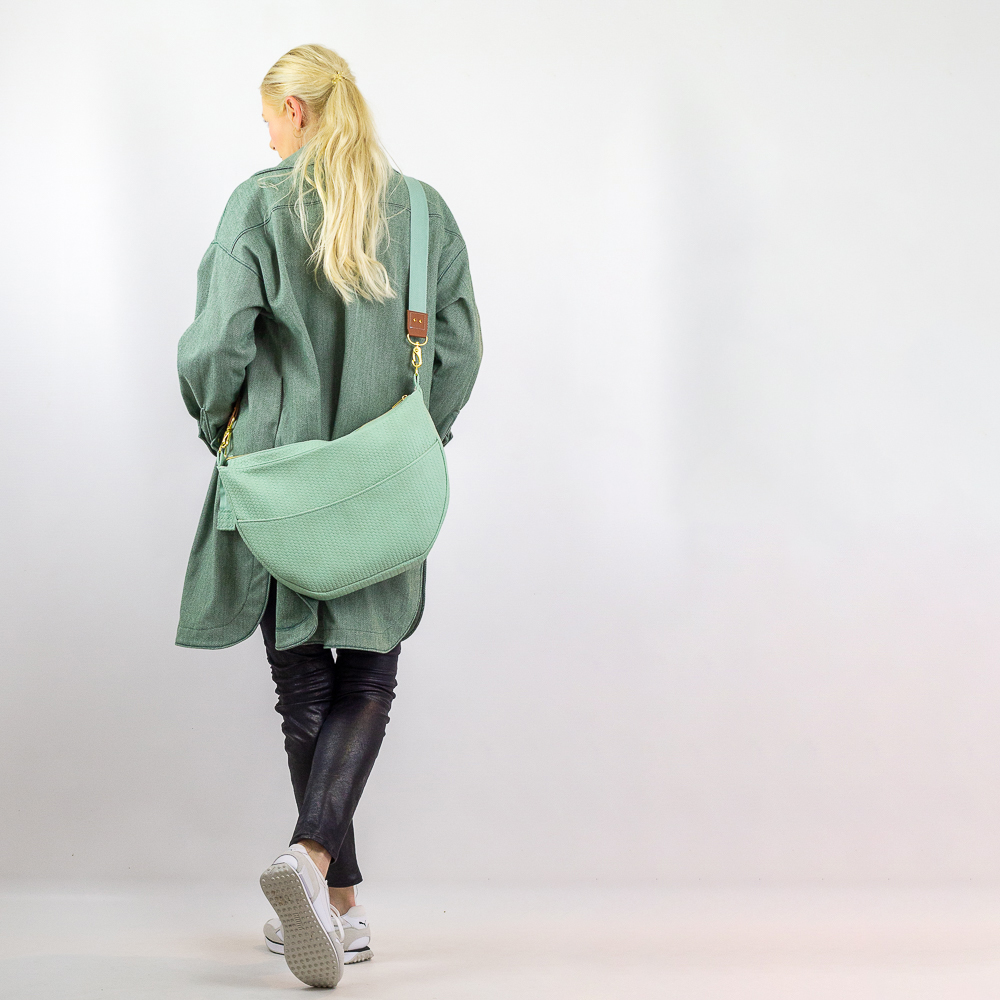 ohTrudi, eine lässige Schultertasche in einer fließenden Form. Je nach Verstärkung ist ohTrudi ein sanfter Begleiter, der einerseits tough und andererseits stabil ist. ohTrudi kannst du je nach gewählter Schulterriemenlänge in der Hand, über dem Arm, über der Schulter oder super stylisch als Crossbodybag tragen.