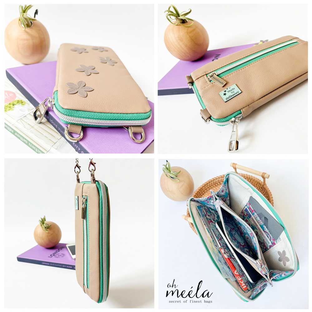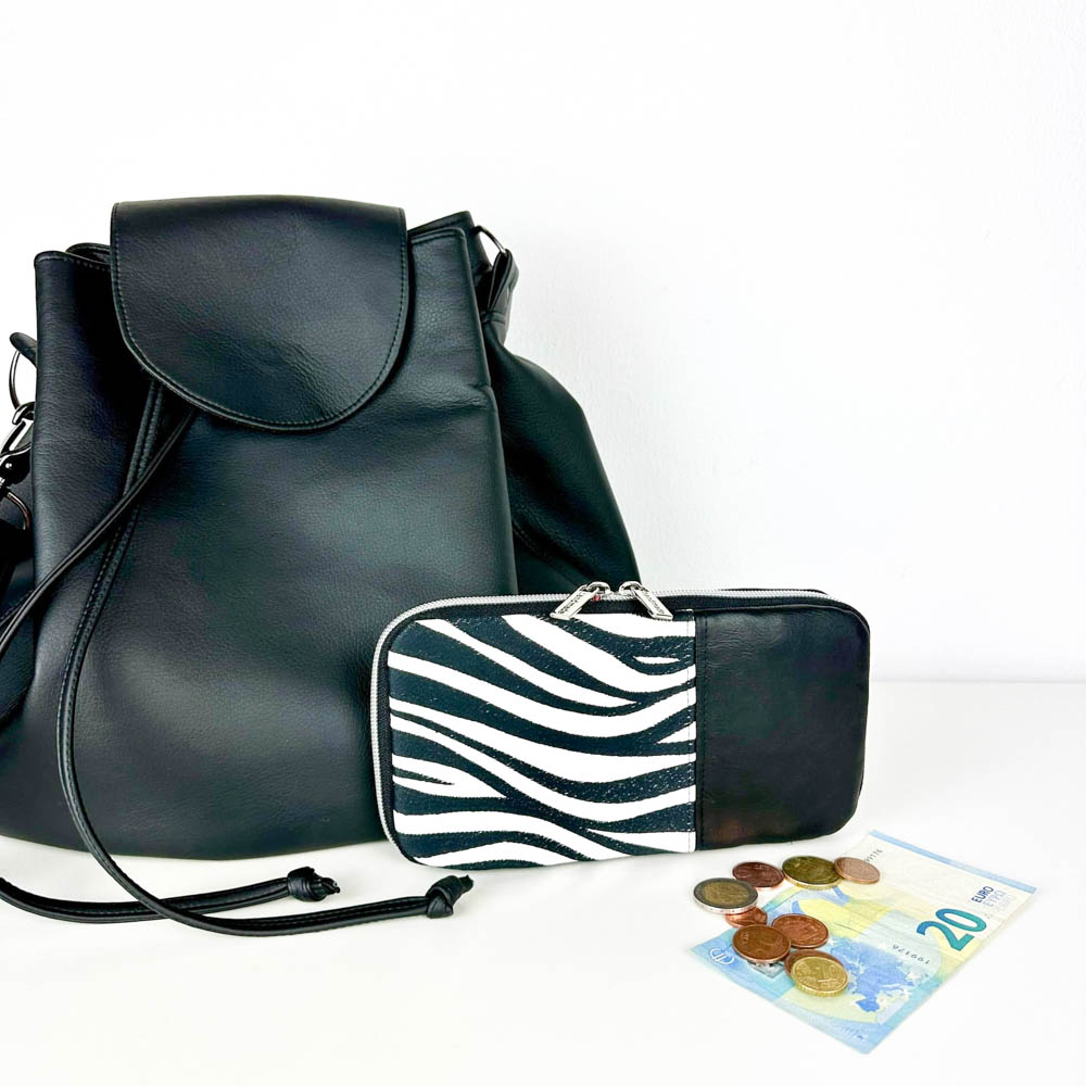 ohWalli Big ist ein praktisches Portemonnaie im klassisch minimalistischen Design, sodass es zu jedem deiner Lieblingsoutfits passt. Die Größe ist perfekt mit Platz für, je nach Variante, bis zu 24 Karten, Kleingeld, wahlweise offene oder gefaltete Scheine und zusätzlich ausreichend Platz für Fotos, Kassenbons, Parkschein und vieles mehr. Mit einer fertigen Taschenkette oder einem Statement-Gurt perfekt als kleine Crossbag, in der alles Nötige gut verstaut ist. Sogar dein Handy findet hier zusätzlich noch einen Platz. ohWalli ist nicht nur chic und passt zu jedem Look, sondern ist eine perfekte Kombination, je nach Stoffwahl, für Date Nights, Parties oder einfach nur als Portemonnaie in deiner „Everyday-oh meéla-Bag“. Je nach Stoffwahl kannst du ohWalli sehr classy, sportlich, schick oder trendig gestalten. Das Portemonnaie wird komplett mit einem Reißverschluss geschlossen. Wahlweise kann eine zusätzliche Klappe gesetzt werden. Des Weiteren kann ein Reißverschluss-Fach im Außenteil genäht werden, dieses ist bei Nutzung der Klappe auch noch versteckt. Auch verschiedene Teilungen erwarten dich. Für eine Handgelenkschlaufe oder einen Tragegurt können Aufhängungen gesetzt werden. Im Innenteil befinden sich ein Kleingeldfach sowie wahlweise 3 verschiedene Designs für Kartenfächer mit Platz für bis zu 24 Karten oder weniger mit zusätzlichem Schein- oder Einsteckfach oder einem einzelnen Scheinfach. Alle Nähschritte und Varianten werde ich dir in dieser Anleitung ausführlich und gut bebildert erklären.