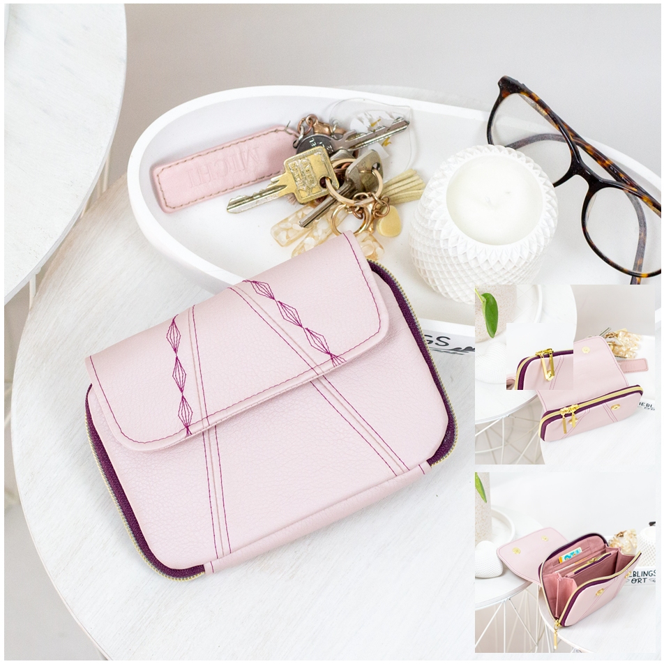 Das Portemonnaie wird komplett mit einem Rundum-Reißverschluss geschlossen. Wahlweise kann eine zusätzliche Klappe gesetzt werden.