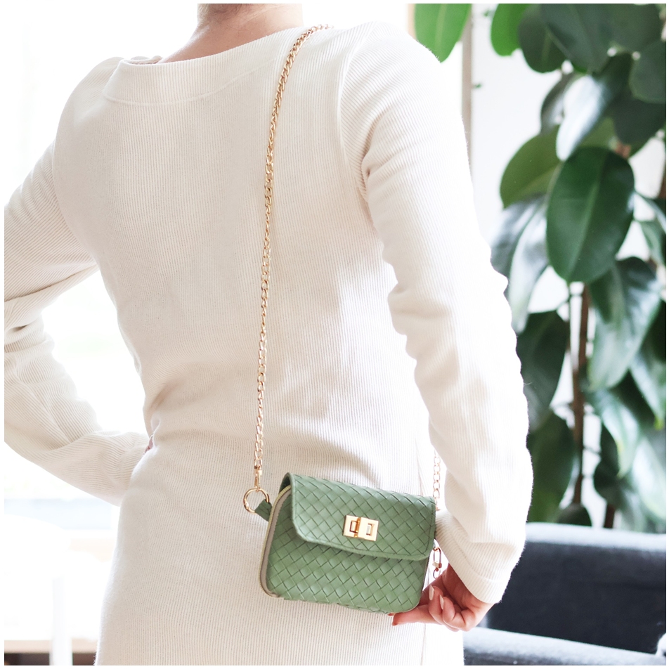 Mit einer fertigen Taschenkette oder einem Statement-Gurt perfekt als kleine Crossbag, aber auch als Gürtel-Bauchtasche angenehm tragbar.