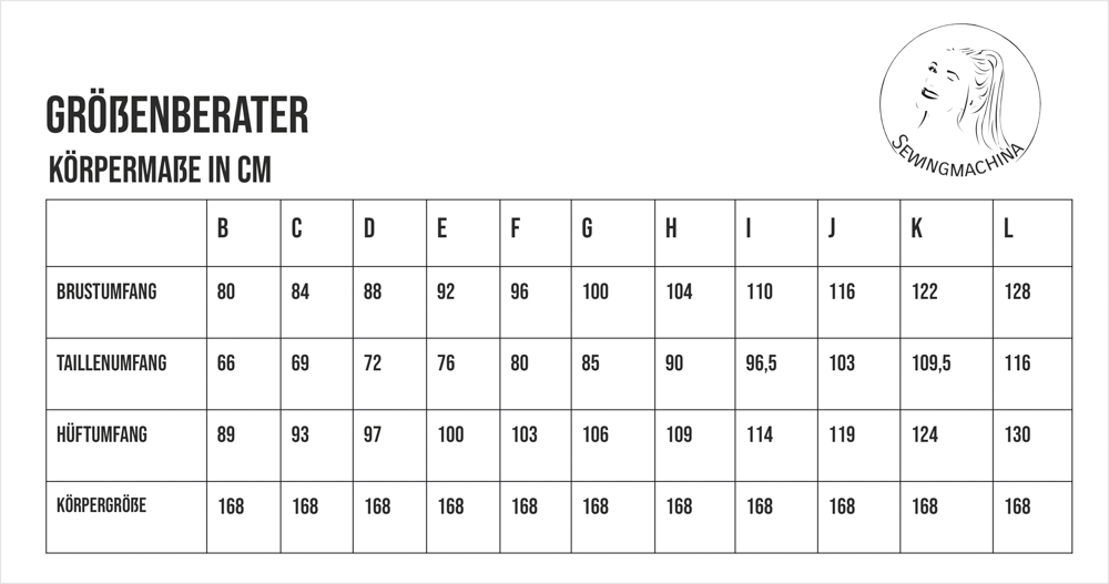 Der Schnitt ist in 11 Größen verfügbar, bitte siehe hierzu die Größentabelle.