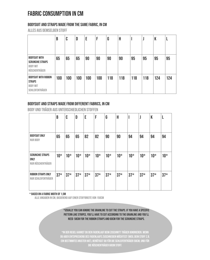 Die Träger werden extra genäht, das heißt hier kannst du dich kreativ austoben, verschiedene Stoffe mixen und dem Body so deine ganz persönliche Note geben! Das Vorderteil hat zwei Teilungsnähte. Perfekt für Bert sind Jerseystoffe mit etwa 30-50% Stretch.