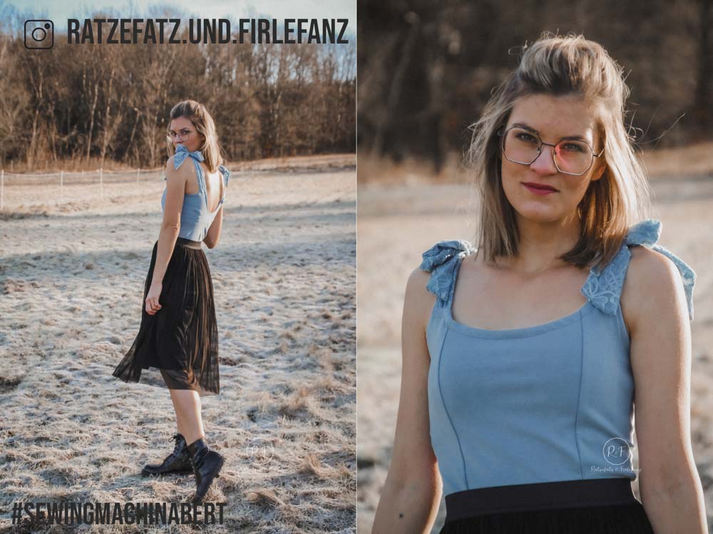 Mit diesem Schnittmuster kannst du dir selbst einen schönen, sehr wandelbaren Body nähen. Er passt super zu Jeans, Rock oder Shorts und ist durch den Rücken und die Träger auf jeden Fall ein Hingucker.