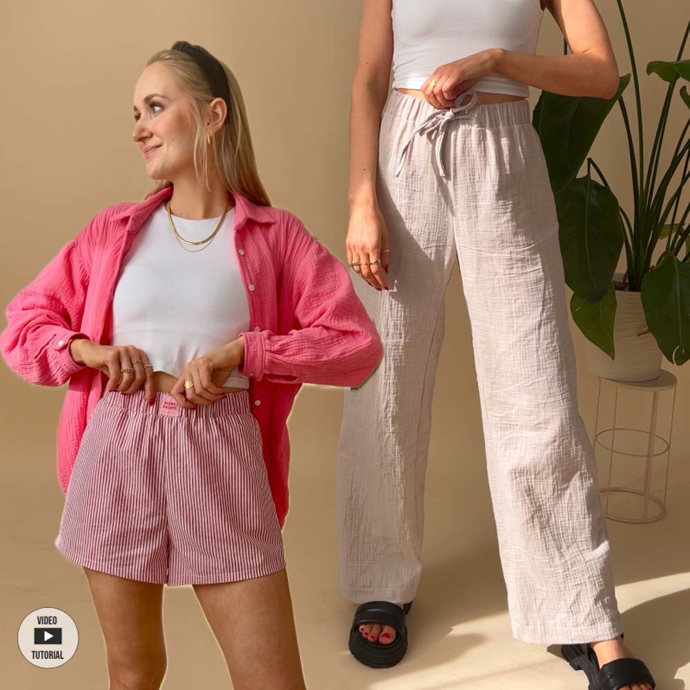 Näh dir mit diesen beiden Schnittmustern eine lässige weite Hose mit langem oder kurzem Bein! Perfekt für den Sommer und wunderbar zu kombinieren.