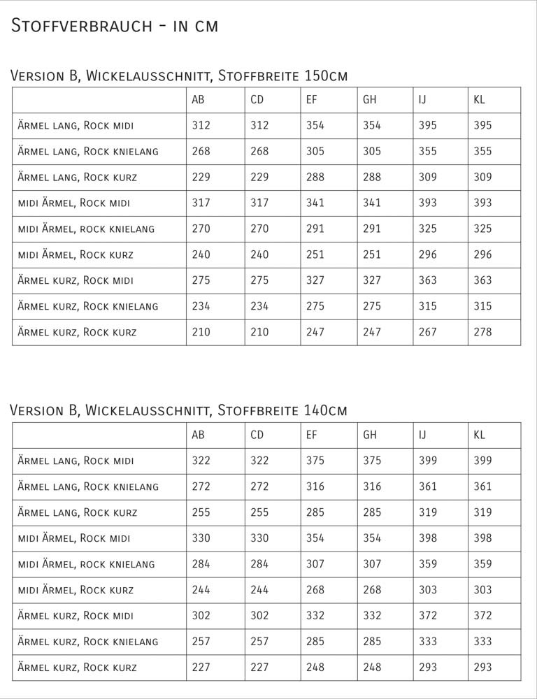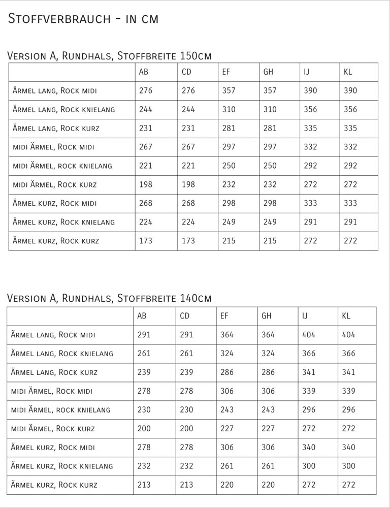 Der Schnitt enthält 6 Doppelgrößen, siehe hierzu die Größentabelle.