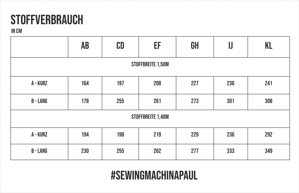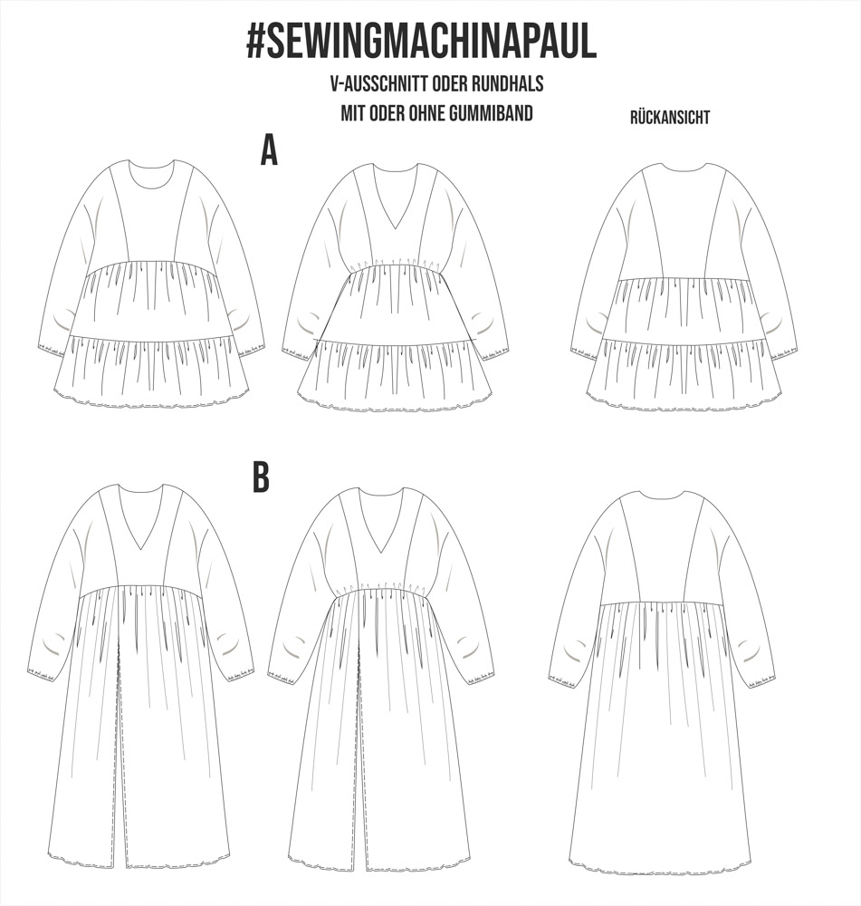 Im Schnittmuster sind beide Varianten (A+B) enthalten.