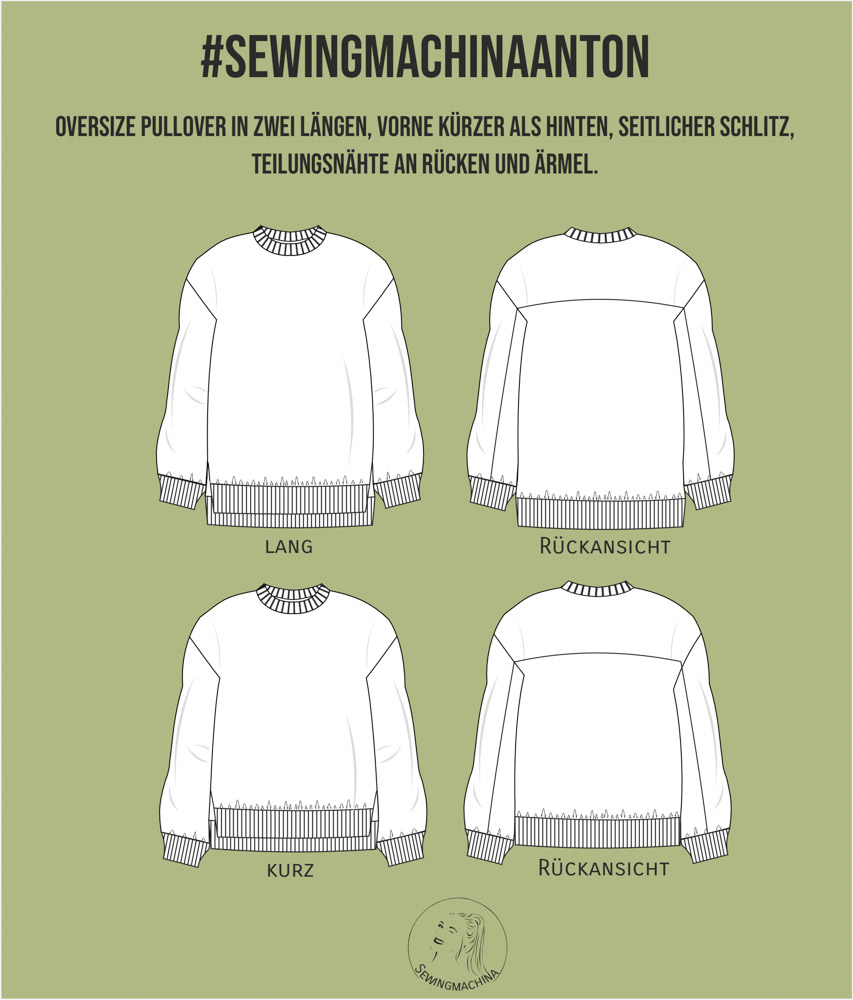 Mit diesem Schnittmuster kannst du dir einen, lässigen, gemütlichen oversize Pullover nähen.