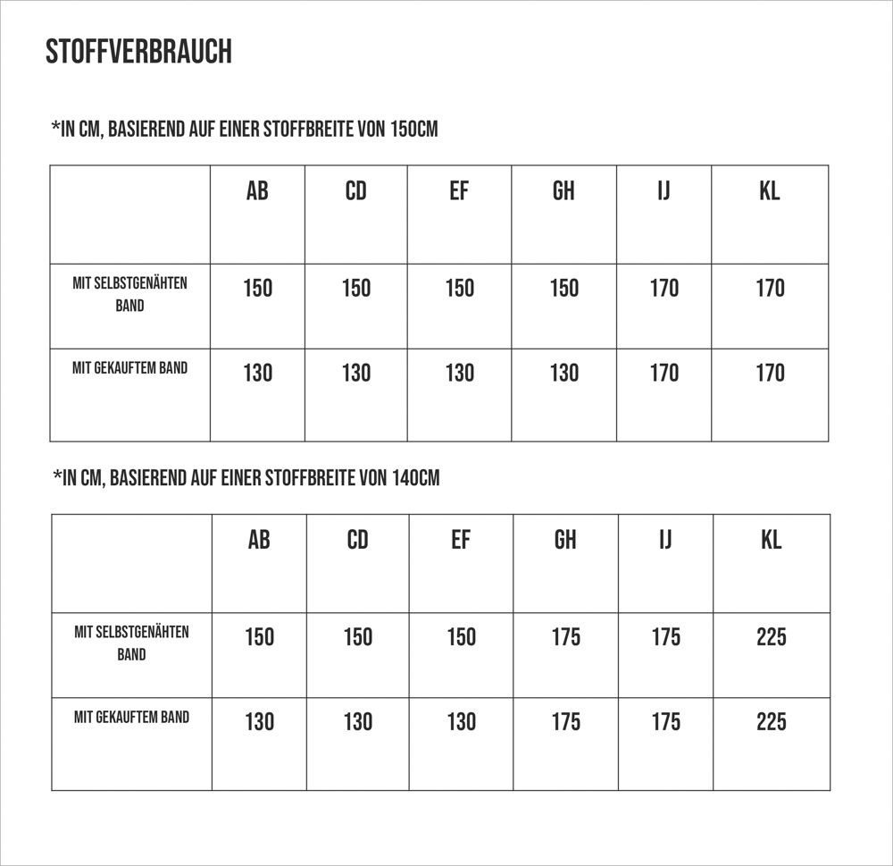 Der Schnitt ist in 6 Doppelgrößen verfügbar, bitte siehe hierzu die Größentabelle.