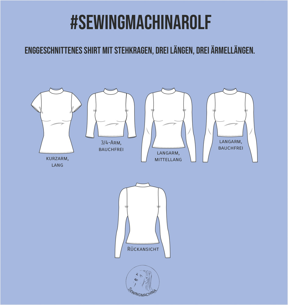 All types of knits with a stretch factor of 60-80% are suitable for Rolf, such as viscose or cotton knits, Lycra, rib knits etc. (This stretch factor means that you can stretch your fabric to 1.6 to 1.8 times its width).