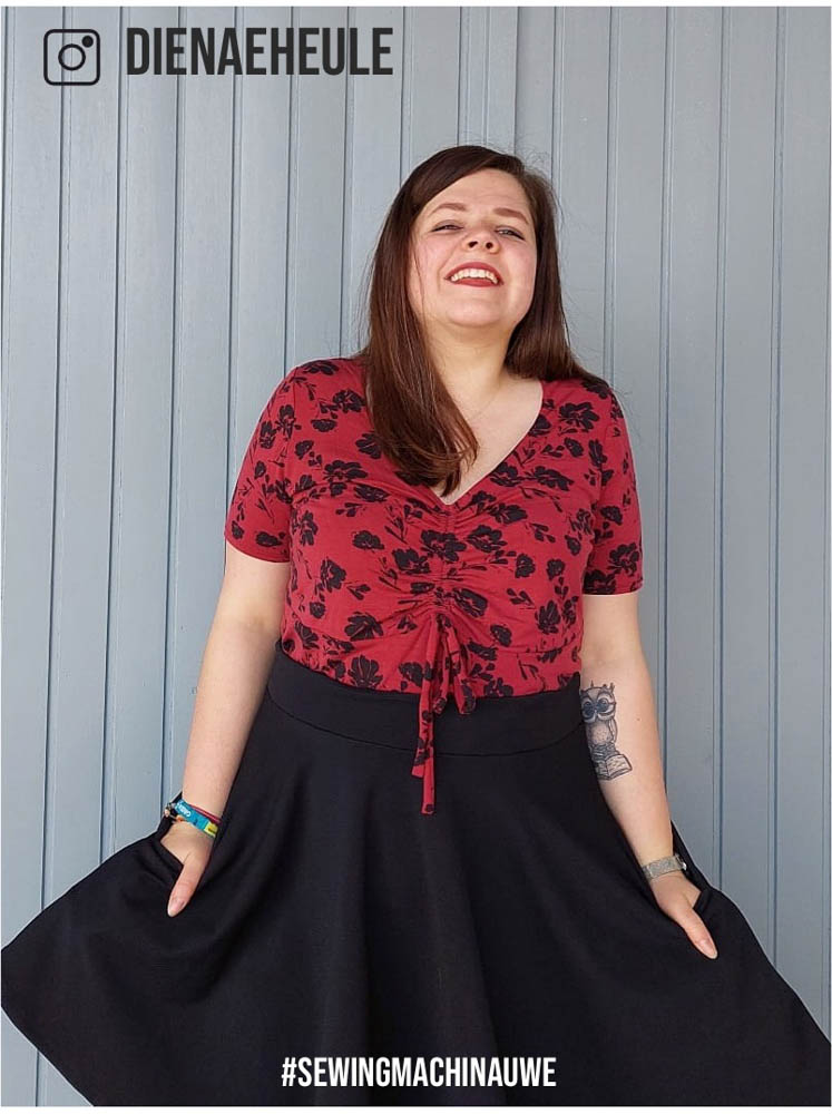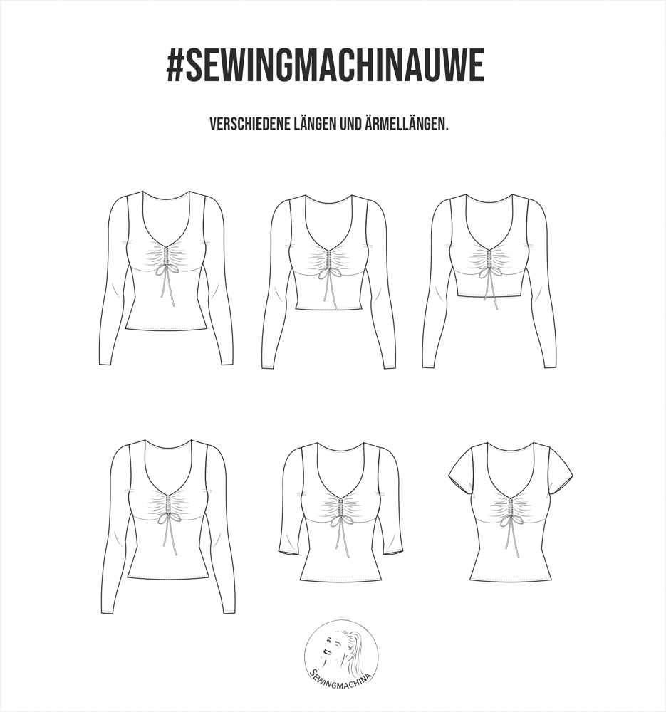 Mit diesem Schnittmuster kannst du dir selbst ein süßes Shirt mit Raffung an der Brust nähen. Du kannst zwischen 3 Längen (bauchfrei, kurz und normal) sowie 3 Ärmellängen (kurz, ¾ und lang) wählen. Zudem gibt es das Schnittmuster für unterschiedliche Körbchengrößen (A/B/C und D/E/F). Es eignen sich alle Arten von Jersey mit einem Stretchfaktor von mind 50%, wie z.B. Viskose- oder Baumwolljersey, Lycra, Rippjersey etc. (Der Stretchfaktor bedeuet, dass du deinen Stoff auf die 1,5-fache Breite dehnen kannst) Das Schnittmuster kann sofort heruntergeladen und ist in A4 und A0 (ohne Ebenen) sowie einer beamerfähigen Datei mit Ebenen verfügbar. Durch den Zuschneideplan und die detaillierte, bebilderte Anleitung eignet sich der Schnitt auch super für Nähanfänger. Die Nahtzugabe ist ebenfalls enthalten, sodass du direkt loslegen kannst.