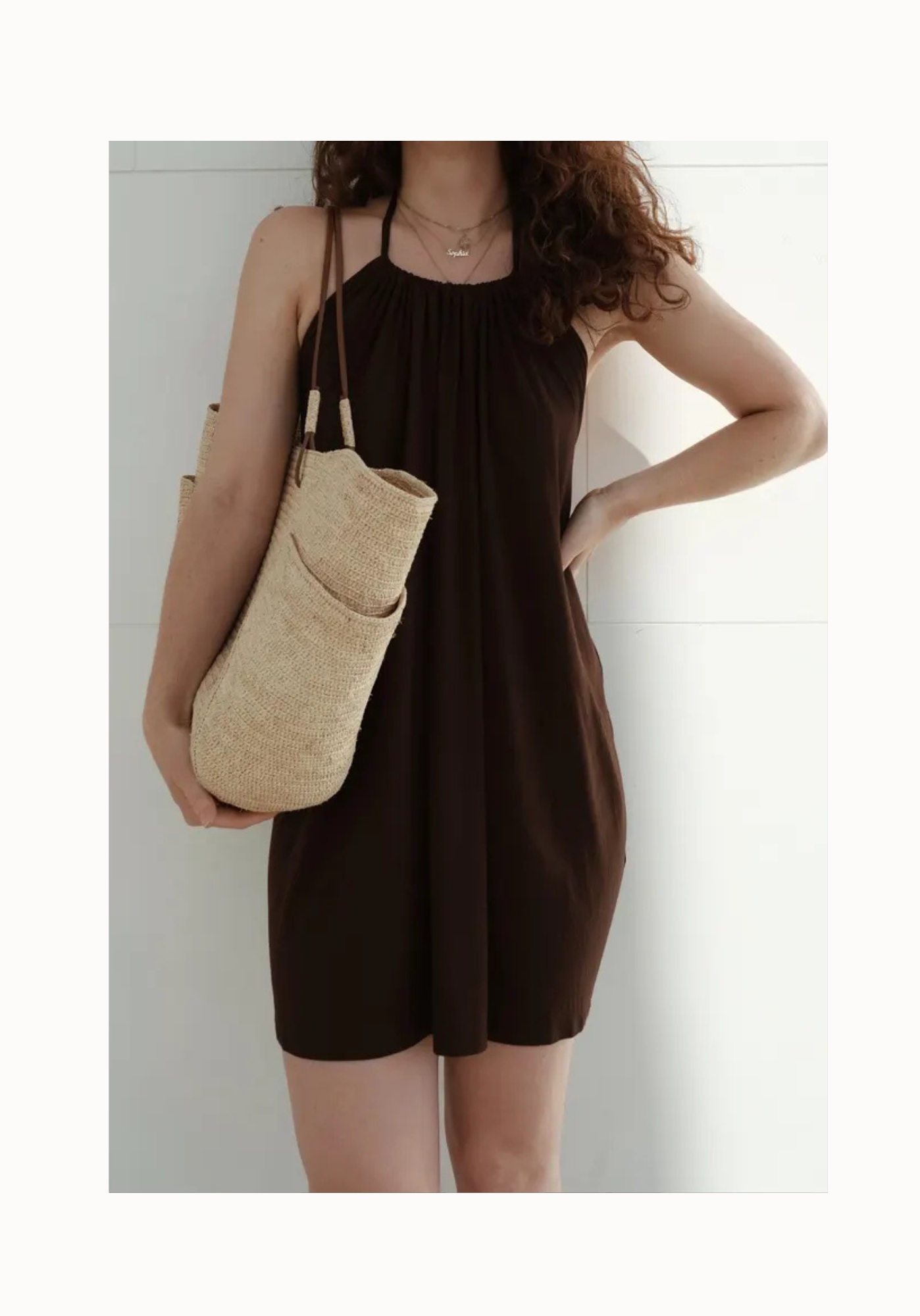 Für dieses Kleid ist es am besten, einen leichten Stoff wie Modal und Jersey zu wählen.