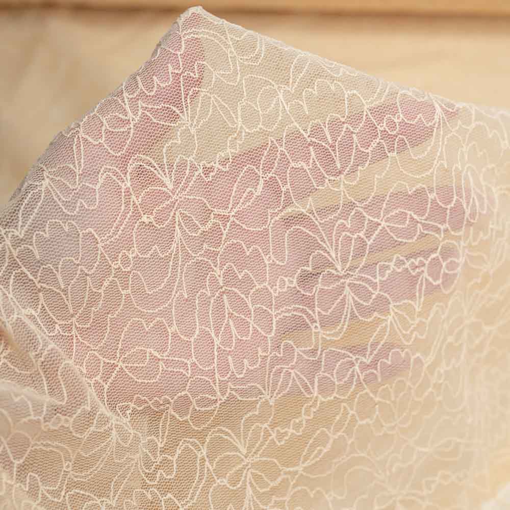 Dieser elastische Mesh ist besonders weich und fühlt sich angenehm auf der Haut an. Mit seinem floralen Design eignet er sich perfekt für die Herstellung von Kleidung.