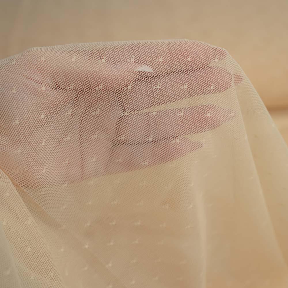 Dieser elastische Mesh ist besonders weich und fühlt sich angenehm auf der Haut an. Mit seinem Pünktchen Design eignet er sich perfekt für die Herstellung von Kleidung.