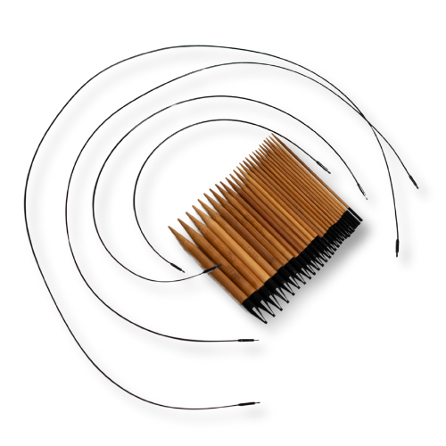 Ein edles Nadelspitzen Strick Set aus Holz. Mit austauschbaren Nadelspitzen in verschiedenen Größen, und 4 Seilen. Die Nadelspitzen bestehen aus robustem Bambus Holz mit glatter Oberfläche.
