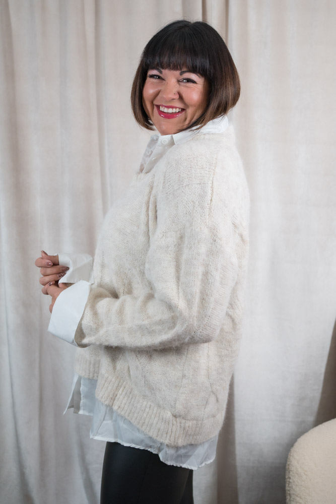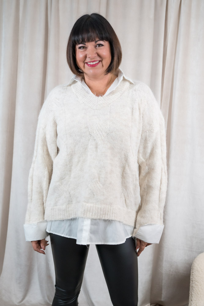 Strick Pullover mit Bluseneinsatz beige