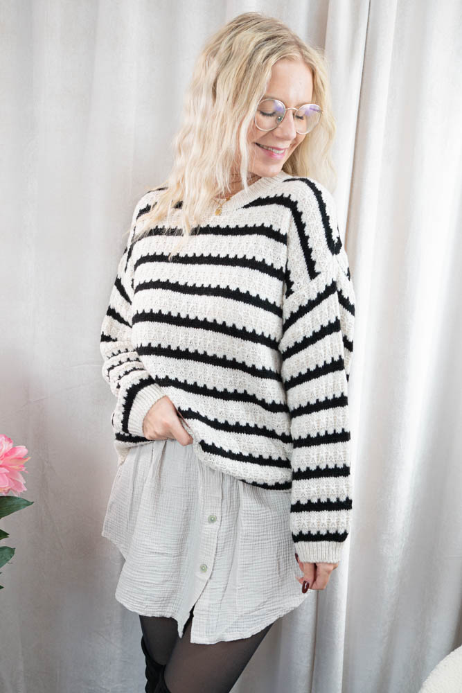 Schöner weicher Strick Pullover mit Streifenmuster- hergestellt in Italien.