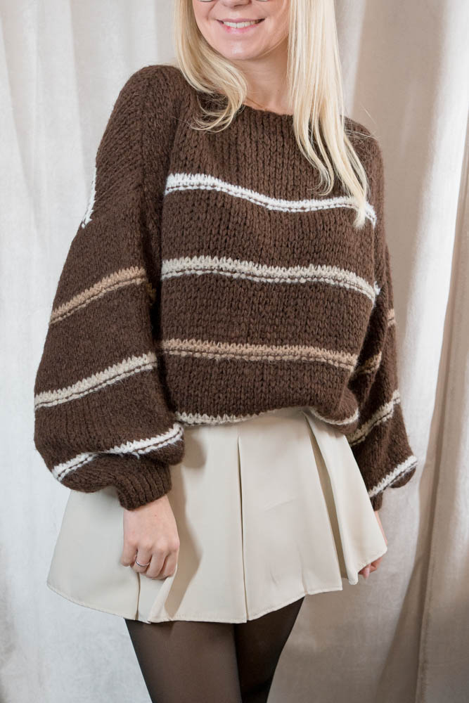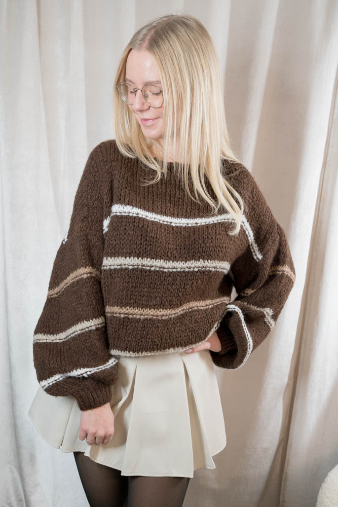 Ein super weicher Strickpullover mit Streifen in verschiedenen Farben.
