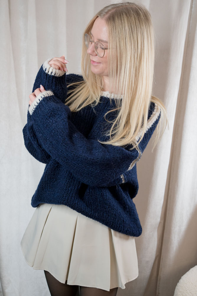 Ein super weicher Strickpullover mit Kontrastnaht in verschiedenen Farben.