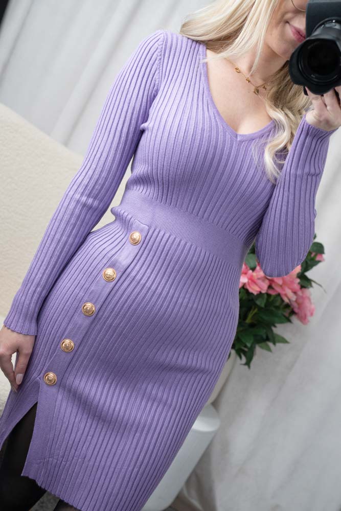 Strickkleid mit Knopfleiste Kira flieder