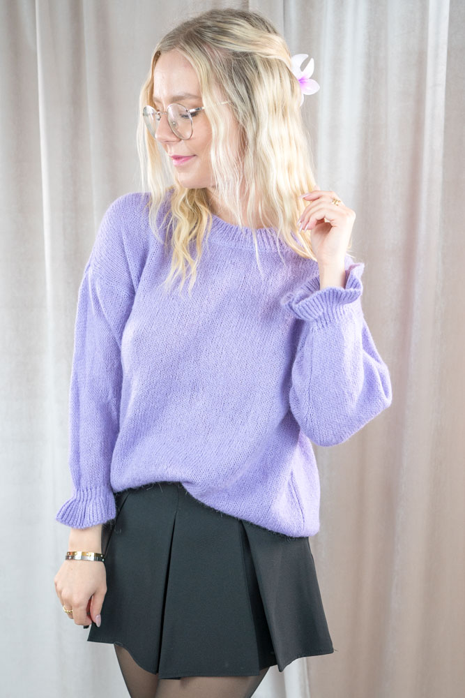 Schöner Strickpullover -Made in Italy- mit süßen Rüschenärmeln und Rundhalsausschnitt.