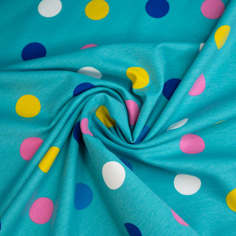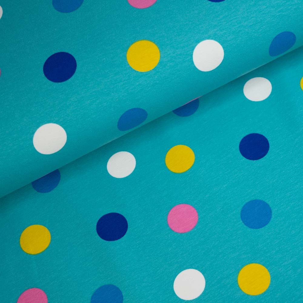 Sweat French Terry Große Punkte türkis