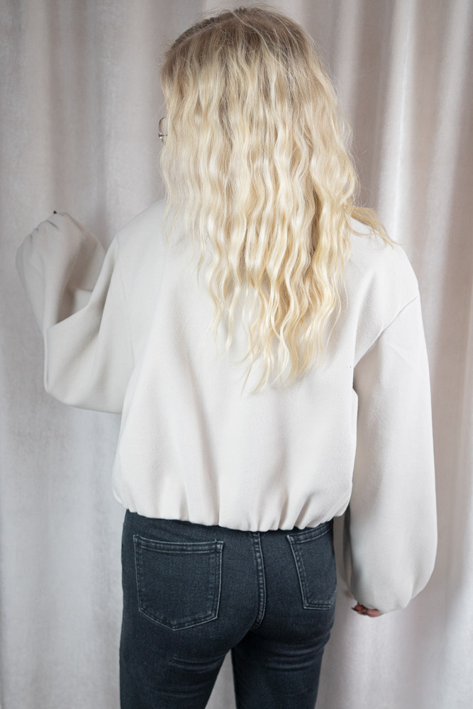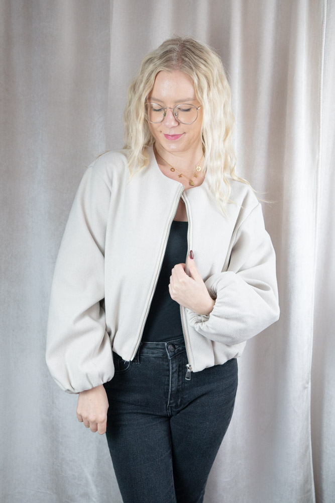 Super schöne Übergangsjacke aus Mantelstoff mit silbernem Reißverschluss und seitlichen Eingriffstaschen. Sie ist gefüttert mit Futterstoff und besitzt ein leichtes Gummi an Ärmel und Bund - hergestellt in Italien.