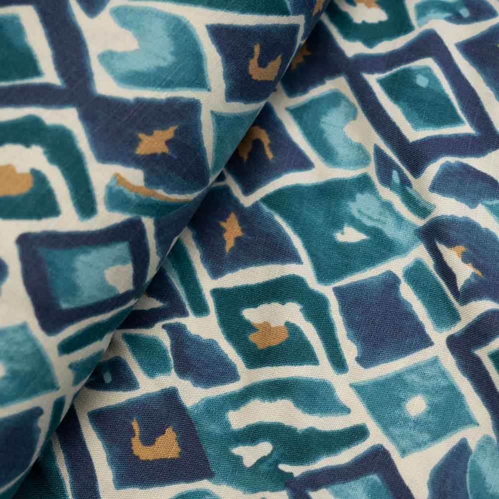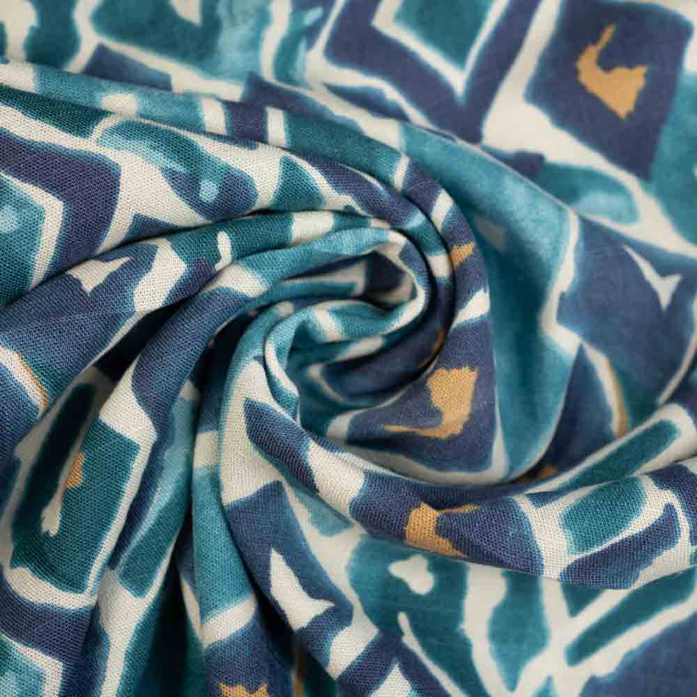 Viskose Stretch Leinen-Look Rauten petrol