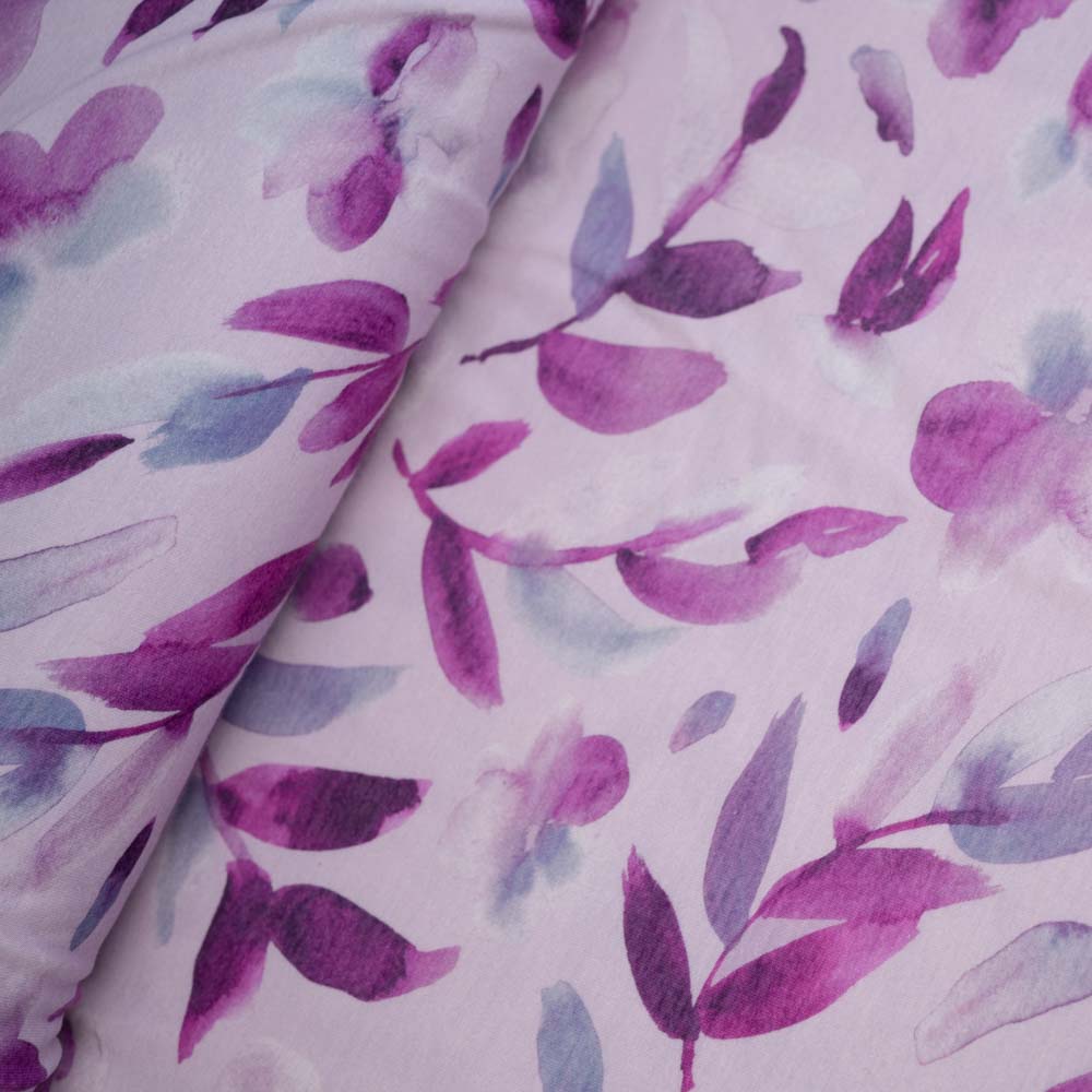 Viskosejersey Aquarellblätter flieder