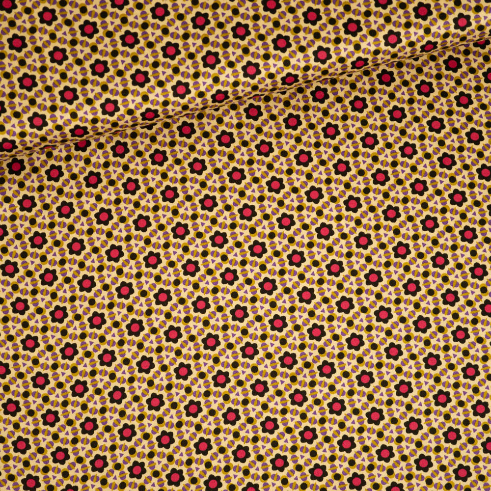 Viskosesatin Kleine Blumen beige-pink