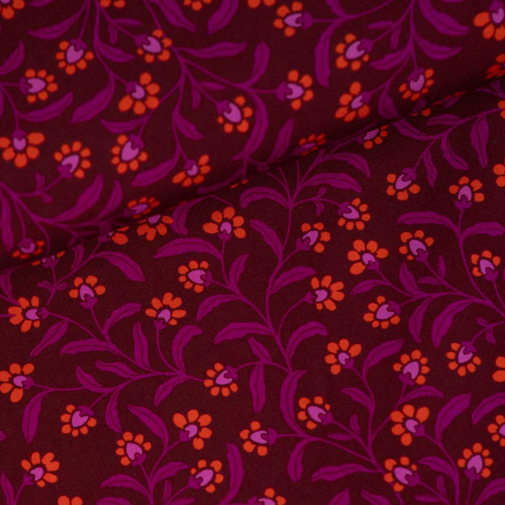 Viskosewebware Blümchen bordeaux