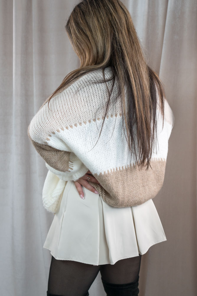Woll-Cardigan mit Rüschenärmel Patchwork beige