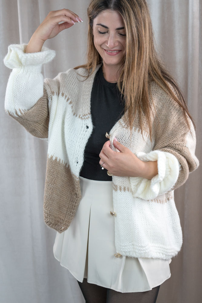 Super softer Oversized Strick Cardigan mit süßen Rüschenärmeln und hochwertigen Goldknöpfen zum Schließen. -Made in Italy-